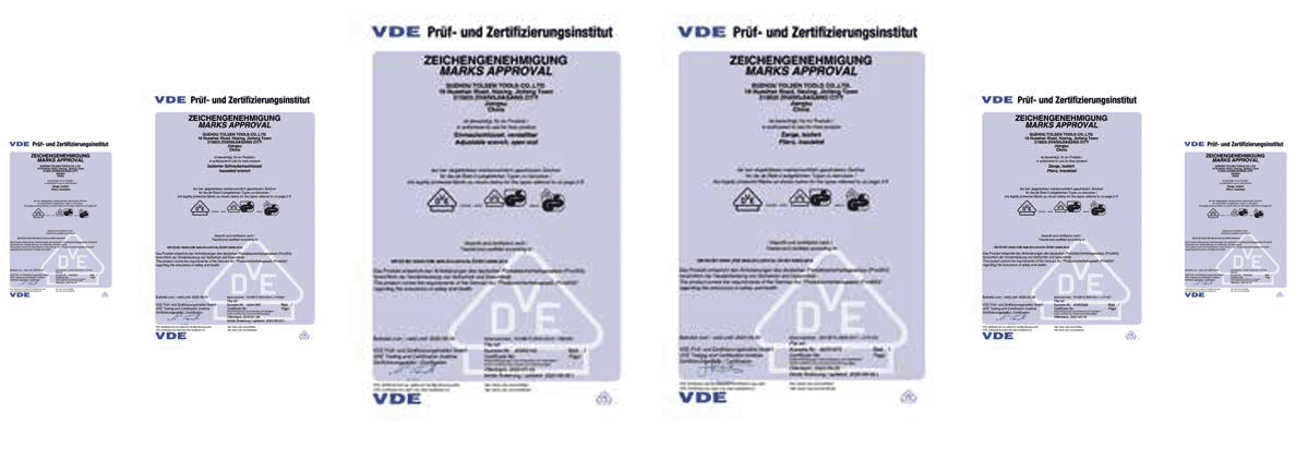 Technical working equipment and consumable materials subject to the applicable device and product safety laws bear the VDE-GS mark, which stands for the safety of the product with regard to electrical, mechanical, thermal, toxicological, radiological and other dangers. In addition, tools with the VDE-GS mark conform to the VDE regulations or European or internationally harmonised standards, i.e. they confirm the compliance with the safety requirements of the respective guidelines.